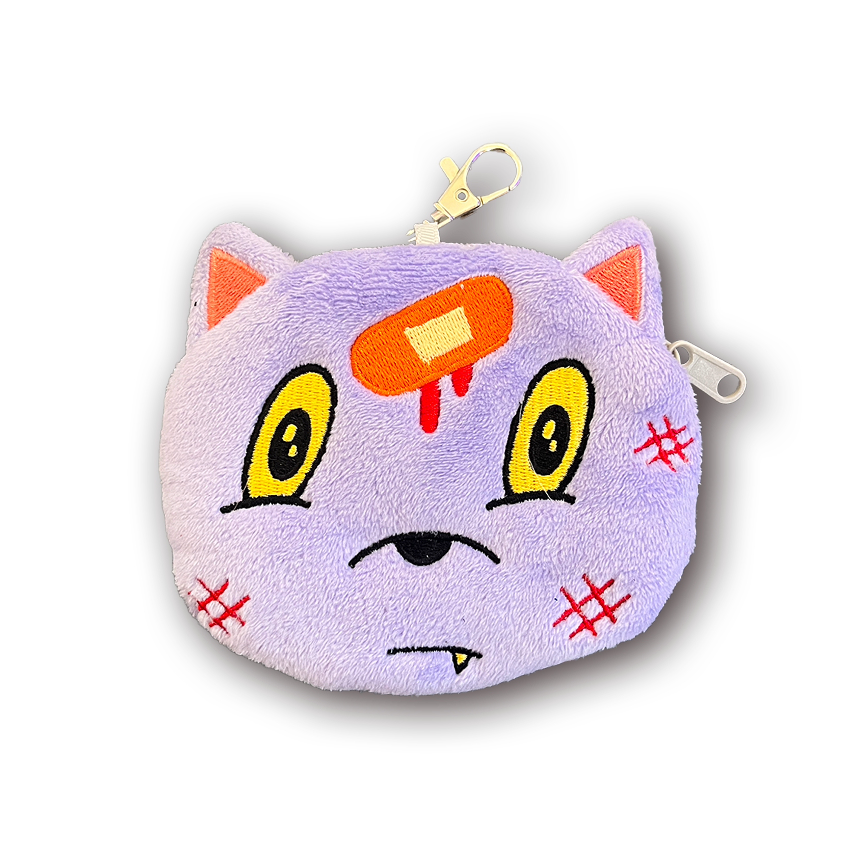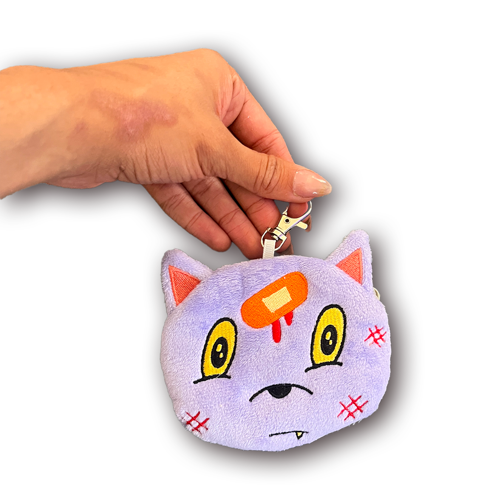 Keychain pouch with embroidered front and back designs and lobster claw clasp. Size: 4.5 x 3.75 inches (11.4 x 9.5 cm)